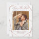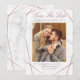 Marble Rosa Dourado Geométrico Photo Save The Date Card. Linda e elegante moda de mármore minimalista salva os convites de data com uma moldura geométrica de ouro rosa. Esse design de chic moderno personalizado pode ser facilmente personalizado com seus próprios detalhes de casamento.