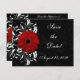 Conjunto de convite de casamento apresenta Gerbera Daisy Vermelho Verdadeiro em fundo preto com destaque em pergaminho branco. Perfeito para inverno, outono, primavera, verão, qualquer estação. Fácil de personalizar online! O conjunto completo inclui convites, cartões de resposta rsvp, cartões de agradecimento, selos de envelope, photocards, cartões de lugar de mesa e mais!
