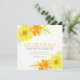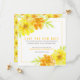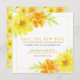 Simples arte marigada botânica em casamento amarelo, laranja, verde e quadrado branco salve o novo cartão de data. Editar este novo cartão de data reagendado com seus próprios nomes e data de casamento. Outros itens correspondentes estão disponíveis. Pintor floral de marigold de aquarela original e design por Sarah Trett para www.mylittleedenweddings.com