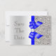 Cartões personalizados de Save The Date para casamento. Elegantes cartões salvos em cores prata e azul-marinho personalizados, planos e duplos-faces com um lindo padrão brilhante de lantejoulas impressas, laços e fitas de imagem vetorial azul-marinho brilhantes e diamantes estilosos e jóias bling impressas e texto cinza-prata escuro em um fundo gradiente prateado. Esses cartões de nota formais prateados, glamorosos e fashion são decorados em ambos os lados e impressos no papel de convite de sua escolha. Belos, elegantes, modernos e sofisticados cartões duplos-faces com brilho e glamour femininos. Por favor, note: Todos os convites no Zazzle têm imagens impressas planas. Tenho produtos combinando para casamentos na minha loja. O texto, a fonte e as cores da fonte são todos personalizáveis para atender às suas necessidades. Se precisar de ajuda para personalizar seu produto, por favor entre em contato comigo através da minha loja. Estarei feliz em ajudar.P