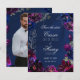 Um assombroso casamento ametista roxo, azul-safira e joia azul-marinho Salve o convite de aviso prévio de foto de data com uma sinfonia de roxo profundo, burgundy e framboesa vermelhos cor-de-rosa enfeitiçados com spray prateado e borrifando contornos prateados azuis com seus nomes em rocha prateada e uma pequena fonte não serif maiúscula anunciando seus detalhes. Sua foto pode ser carregada neste arquivo Salvar a data na parte traseira do convite.