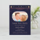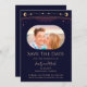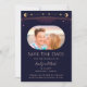 Marinho Místico Arco-Íris Escuro Sol Azul Sol Estrela-Lua Espaço Cósmico Astronomia Celestial Salve As Datas apresentam um arco-íris colorido sol, lua e estrelas em um fundo azul marinho escuro. Dentro é a sua foto favorita e o seu personalizado salva as informações de data. Personalize editando o texto nas caixas de texto. Projetado por ©2024 Evco Studio www.zazzle.com/store/evcostudio