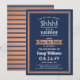 Você pode guardar um segredo? Convide colegas, colegas de trabalho, família e amigos para uma elegante e excitante celebração de aposentadoria surpresa com marinho azul, branco e falso papel de cobre, para salvar os convites de festas de data. Toda a redação desta modelo é simples de personalizar, incluindo a mensagem que diz "Shhh! É uma SURPRESA." O design apresenta uma fronteira striped moderna, uma típica tipografia vintage art deco e uma caligrafia na moda. Observe que cobre é cor laranja-clara, não é folha metálica. A design neutra do ponto de vista do gênero também é adequada para um homem ou para uma mulher. Parabéns e feliz aposentadoria!