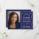Uma foto Salve a data de um aniversário de 40 anos (ou qualquer idade) Na frente: adicione uma foto de tamanho vertical. Uma cor azul de fundo marinho, decorada com um arco e uma estrutura desenhados à mão branca. Personalize e adicione um nome e detalhes.