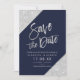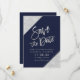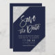 Tipografia prateada no bloco de cor azul marinho de prata, a cor azul-prata personalizável, e banda geométrica de prata falsa salvam o casamento da data, perfeito para o casamento elegante e na moda,