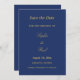 Marinho Azul Ouro Beige Salvar a Data, personalize os nomes do casal, a data do casamento e a localização do casamento, usando o modelo de personalização online antes de fazer o pedido. Se desejar, você poderá personalizar a opção Salvar a Data para um tipo de evento de alternativo em vez de um casamento, alterando o texto adequadamente antes de fazer o pedido. Um na moda Salve a placa de data com texto elegante em um tom de ouro de bege (aparência falsa ouro/ouro) em um plano de fundo azul clássico de marinho.