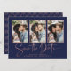 Marinho de Deco de Arte Azul Dourado Manuscrito Salve a data com Cartão com fotos múltiplo em uma fonte elegante e evoca uma sensação romântica manuscrita. Na parte de trás está um design de estilo geométrico, estilo deco de arte, em folha de rosa de ouro cônica, sobre um fundo azul marinho. Projetado para usar três de suas fotos favoritas para personalização adicional. Adicione facilmente seus nomes e datas para um design verdadeiramente personalizado. Entre em contato conosco em cedarandstring@gmail.com se precisar de assistência com o design ou produtos correspondentes.