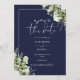 Este elegante convite floral botânico azul-marinho verde floral para salvar a data pode ser personalizado com suas informações em tipografia quic com o seu website de casamento Código QR e detalhes no verso. Projetado por Thisnotme©