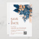 Reserve A Data Marinho Blue Orange Boho Floral Elegante Casamento