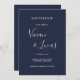 Marinho Blue Script Wedding Salve o cartão de data com nomes de estilo de assinatura, este elegante Marinho Azul salve o cartão de data pode ser personalizado com suas informações especiais do dia do casamento em letra chic.