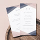 Um design moderno e chico com formas geométricas sobrepostas para criar diferentes tons de rosa-pincel e azul em um fundo branco puro com um monograma simples. O convite correspondente está disponível em: https://www.zazzle.com/blush_navy_monogram_geometric_modern_chic_wedding_invitation-256922893679510831