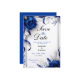 Um layout luxuoso com flores azuis marinhos vibrantes, fitas de satin e delicados sotaques florais brancos. Esse design elegante e ornamentado é ideal para casamentos formais com uma estética clássica ou glamourosa.