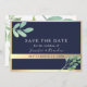 Este casamento moderno de boho salva a data convite combina elementos rústicos elegantes com um esquema de cor azul-marinho e ouro. Adorado com uma aquarela de eucalipto verde e um simples roteiro de caligrafia, exude encanto botânico e sofisticação, garantindo que seu dia especial seja lembrado em estilo.