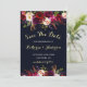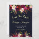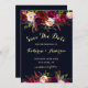 COR DE FUNDO ALTERÁVEL. Casamento Boêmico Guardar a Ficha de Datas com a ilustração aquosa de burgundy, marsala, peões vermelhos e cor-de-rosa e rosas com destaque de penas sobre fundo azul marinho. Isto é perfeito para eventos do outono/outono/inverno, do estilo floral e boêmico. Itens correspondentes também estão disponíveis. * Clique no botão "Personalizar" para alterar a cor, a fonte e o tamanho.