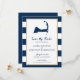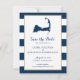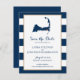 Anúncio de casamento para o seu casamento em Cape Cod. Mapa azul marinho de Cabo Cod com coração vermelho sobre Harwich, Massachusetts. CORES em Marinho Blue Stripes com Dourado caimento. Para obter informações sobre alterações de design personalizadas pelo designer independente, envie um email para paula@labellarue.com ANTES de personalizar ou fazer um pedido.