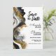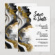 Informe seus amigos e entes queridos do seu futuro casamento com este save-the-date moderno e elegante de mármore ágata preto e dourado. (Nenhum brilho real foi usado neste convite.)