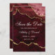 Cartão de Anúncio de Noivado com Mármore Ágata Geodo Aquarela Burgundy e Dourado Moderno e Elegante