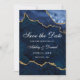 Cartão de Save the Date de Mármore Azul Água-marinha e Dourado Elegante e Moderno de Geodo de Ágata