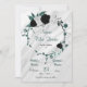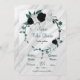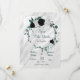 flores pretas, brancas e azuis, com azul-lacre romântico folhas coroa coroa coroa botânica em uma cinza, salvo o convite da data.