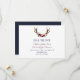 Design boêmico, russo para eventos especiais, todas as estações! Este design apresenta galhadas de veados, buquê de flores de marsala, flechas com flores de marsala e um fundo azul marinho no verso. Use a ferramenta Personalizar para adicionar suas informações; você pode alterar cores, fontes. Para mais, visite, por favor, a minha Coleção Azul de Marinho Floral de Marsala.