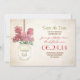 Mason jar com ramificações lilás e papel velho e escorregadio salvam as placas de data plana (convites).