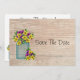 Este Mason Jar of Pansies Save The Date apresenta minha arte desenhada no mouse. Excelente para Casamentos do País! Procure por RSVP e Convites de Casamento correspondentes.