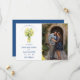 Mediterranean Cheerful Floral Arrangement Lemons & Flowers Wedding Save the Date Cards with Photo and Back Modern QR Code. Blue Back Background.