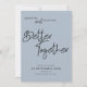 Um moderno design informal para pedir aos seus convidados que guardem a sua data de casamento com um roteiro preto de estilo manuscrito para Melhores Juntos no centro para coordenar com o "e" no mesmo roteiro de conjunto entre os seus nomes. O resto do texto pode ser facilmente personalizado. Um fundo azul mais escuro está atrás. As cores do texto e do plano de fundo podem ser alteradas para cores diferentes se você desejar por meio da opção personalizar mais.