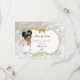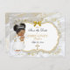 Linda menina em seu vestido batizante, véu e colar de cruz dourado. O fundo é o cetim branco, o filigre dourado, uma moldura dourada e prateada e um embelezamento do arco. A parte de trás é enfeitada com o padrão de flor dourada em um fundo branco de cetim.