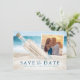 Mensagem única e bonita em um casamento temido na praia de garrafas... salve os cartões de anúncio que seus hóspedes vão tesourar! A mão da trabalho de arte de aquarela tropical ilustrada pela artista Raphaela Wilson, retrata uma mistura romântica de azul lacrimogêneo, verde-marinho, bronzeado claro e ouro. As ondas do oceano caem sobre a costa no fundo, e uma garrafa de vidro se projeta da areia da praia do ouro que você pode reposicionar se quiser. Você tem a flexibilidade criativa nesses modelo, exceto a data de convites para adicionar em plumeria tropical flores, folhas de palmeiras e outros fundos de aquarelas. Adicione sua própria foto e mensagem/data especial no pergaminho, e até mude o roteiro de caligrafia e o estilo moderno de tipografia para diferentes tipos de letra de sua escolha. Esses elegantes casamentos salvam os convites de data funcionam lindamente para casamentos de destino, um chá de panela temático da praia, uma festa de aniversário tropical, e outras ocasiões importantes celebradas no Havaí, estilo litoral. Queda, primavera ou verão - você pode criar os cartões salve a data / postais personalizados de praia perfeitos nesta modelo fácil do faça-você-mesmo que não deixará nenhuma impressão. Aproveite! Categoria: mensagem em cartões salve a data de garrafas; casamento de praia, salvar os convites de data; e casamento elegante, salvar os convites de data. Paleta colorida do casamento náutico: azul-aqua, verde-lacre, branco, bronzeado e ouro.