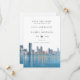 This elegant Miami skyline watercolor wedding save-the-date card can be personalized with your information in modern typography. Designed by Thisisnotme©