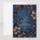 An enchanting deep-navy wedding design wrapped in glowing copper florals and delicate botanical detailing. This immersive, moody palette creates a romantic twilight atmosphere, perfect for elegant evening weddings or couples who love rich, dramatic aesthetics. The ornate frame draws the eye to your names and details, giving the entire piece a luxurious, storybook feel. A sophisticated choice for modern romantics who want their celebration to feel timeless and striking.
