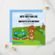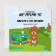 Este é o cartão "Salve a data" perfeito para uma comemoração inesquecível! Prepare-se para celebrar o dia especial do seu filho com uma divertida e única aventura de "mini putt". O adorável design apresenta uma gopher bonita ao lado de um mini obstáculo de golfe com tema de bolo de aniversário, com o moinho clássico girando ao fundo.