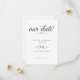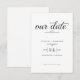 Announce your special day with this elegant wedding save the date card. This design features a clean and modern layout with refined typography. The phrase “Save our date” appears in elegant script, accented by a subtle heart detail for a soft romantic touch.