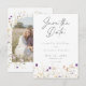 This minimalist wildflower romantic botanical wedding photo save the date design features delicate florals, soft neutral tones, and elegant typography. Perfect for couples seeking a timeless, romantic style, it offers a refined, modern look that elevates your wedding aesthetic. Created by Simply Farmhouse Press.