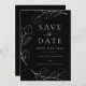 Um eucalipto minimalista bonito deixa desenho de linha prig. Um na moda verde moderno design em preto e branco simples com moderno roteiro elegante de tipografia. Uma botânica minimalista química salva a data que é fácil de personalizar usando a modelo. Arte original da artista Catherine Sweetman