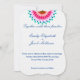 Um convite para o casamento que aparece é um mínimo branco com um design de inspiração de lótus cor-de-rosa com texto branco.