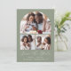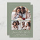 Este simples e minimalista Cartão Salvar a Data apresenta um arco de colagem de 3 fotos acima das palavras "Salvar a Data" em um elegante roteiro branco, seguido pelos nomes do casal, data do casamento e cidade em sans serif em um fundo verde sábio. Adicione uma mensagem mais detalhada com informações adicionais sobre o inverso, juntamente com um código QR para ajudar seus convidados a visitar seu site de casamento.