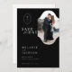 Um cartão salva-vidas eterno, clássico e elegante com uma estética mínima moderna em preto e branco clássico. Simples crista monográfica elegante com uma simples tipografia organizada num esquema moderno. A foto é exibida em um quadro fotográfico exclusivo para corresponder à crista do monograma do casal. **Todas as cores podem ser alteradas para se adequarem à sua preferência de cor de casamento. Veja os nossos outros itens de casamento correspondentes para esta coleção.