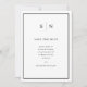 Este casamento elegante e moderno salva os cartões de data apresentam um simples design de texto minimalista preto e branco, com um quadro clássico na fronteira. Adicione suas iniciais ou monograma para torná-las completamente suas.