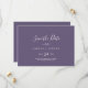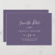 Este mínimo de púrpura de folha, horizontal, exceto o cartão de data é perfeito para um casamento de boho. O design de tom de joia apresenta uma simples silhueta verde de folha em uma violeta azul escura roxa com estilo boho minimalista.