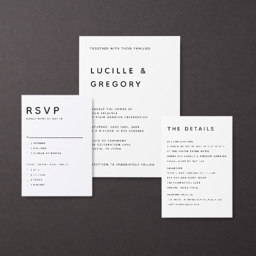 A Designer’s Tip for Your Suite: To ensure a cohesive guest experience from start to finish, I have curated a full matching suite in this signature White and Black. Pair this "Bold" Save the Date with our "Refined" invitations and coordinating minimalist address labels for a high-end, branded look that starts the moment your guests check their mailbox.