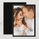 Announce your wedding with this elegant photo save the date card, featuring a full-bleed vertical engagement photo framed by a classic black border. “Save the Date” appears in graceful calligraphy script, with the couple’s names, wedding date, and location shown below in refined serif lettering for a balanced, polished look. Designed for formal weddings, black tie ceremonies, and classic venues, this personalized photo save the date pairs beautifully with black and white wedding invitation suites and offers a stylish way to share your wedding date.