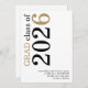 Modern Black Gold Text 2026 White Graduation. Available digitally and printed. A contemporary typographical design with stylish large typography rotated and to the left hand side at the top in black and gold. Easily personalise the rest of the text.