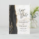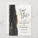 Reserve A Data Modern Black Gold Agate Marble Save the Date