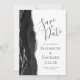 A borda esquerda deste elegante casamento moderno salve o cartão de data apresenta uma coloração d'água preta aparada com falso brilho prateado. O texto personalizável combina a escrita manual de cinzas de carvão, as fontes em copperplate e itálico em um fundo branco. O verso apresenta um design de agata preto e prateado correspondente.