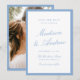 Announce your wedding with this light blue photo save the date card, designed with a soft blue border and an elegant typographic layout. The couple’s names are showcased in romantic calligraphy, complemented by refined serif lettering for the date, venue, and location, creating an airy yet polished look. The reverse displays your engagement photo framed in coordinating light blue, bringing the design together with a fresh, cohesive feel. Ideal for spring and summer weddings, coastal and garden venues, classic ceremonies, and traditional blue and white palettes, this personalized save the date offers a graceful way to share your wedding date.