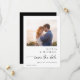 Share your big news with these minimalist wedding save the dates featuring your favorite photo and a cute and modern handwriting script. The simple black and white layout keeps the design elegant and trendy, while the handwritten typography adds a sweet, personal touch. A short message on the back offers space for your details, creating a stylish keepsake for family and friends. A perfect choice for couples who love clean, modern script and timeless save the dates.