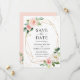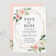 Modern Elegant Blush Pink Floral Geometric Frame Save the Date Card.