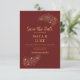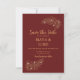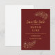 A charming save-the-date invitation features a Burgundy background framed by delicate leafy details for a soft, elegant touch. Stylish, refined text highlights the occasion, with customizable spaces for names, date, and address. Combining classic design with modern convenience.